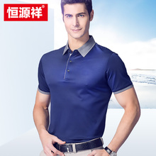 恒源祥桑蚕丝短袖T恤男翻领中年商务男装爸爸装中老年真丝父亲装