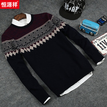 恒源祥羊毛衫男圆领青年套头毛衣几何图案2016新款时尚针织衫潮