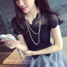 2017夏季新款大码女装蕾丝拼接短袖T恤上衣宽松打底衫显瘦小衫潮