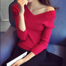 2016秋冬季新款性感露肩紧身包臀打底毛衣女装高领长袖针织连衣裙