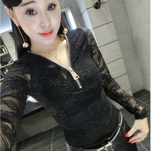 2017春新款蕾丝打底衫女长袖雪纺衫宽松大码胖MM小衫网纱镂空上衣