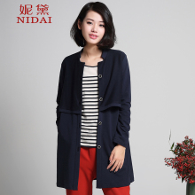 妮黛外套女秋装新款2017大码女装宽松显瘦单排扣春秋装中长款外套