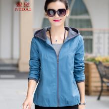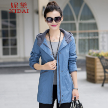 妮黛2017新款春装中长款大码修身显瘦气质长袖连帽女装外套风衣