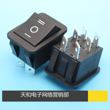 KCD4-203RN 银触点 双刀 6脚3档 黑色 翘板 器具 电源 船型开关