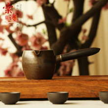 棠诗侧把公道杯陶瓷鸡翅木柄分茶器日本大号粗陶日式茶道茶具茶海