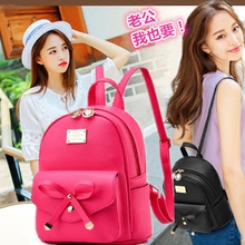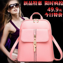 休闲背包女2017新款韩版百搭潮 简约纯色学生包包 双肩女用背包