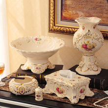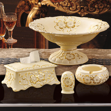 奢华欧式陶瓷装饰品摆件套装客厅茶几水果盘三件套纸巾盒结婚礼物