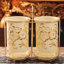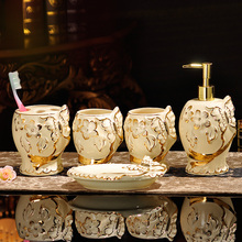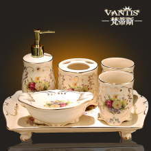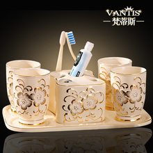 欧式陶瓷卫浴五件套牙缸情侣浴室用品刷牙杯套装创意洗漱口杯套件