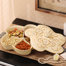 欧式陶瓷创意时尚干果盘分格带盖家用客厅茶几糖果盒零食盘水果盘