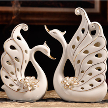 新婚天鹅装饰陶瓷摆件 现代简约创意工艺品闺蜜结婚礼物送礼一对