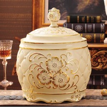 欧式陶瓷米缸装米桶密封防虫防潮10斤20斤带盖大号厨房储物罐米箱
