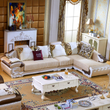 欧式布艺沙发 简约客厅大小户型皮配布转角创意简欧皮布沙发组合