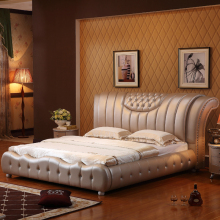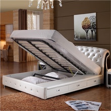 欧式真皮床 软包床 双人床软床皮艺床1.8 2米高箱储物床 婚床现货