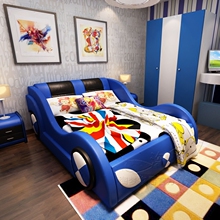 儿童床男孩创意真皮床卡通赛车跑车汽车床女孩1.5可定制家具现货