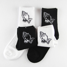 美式潮流欧美圣母玛利亚手势提花纯棉短筒男女生袜子死飞滑板袜子