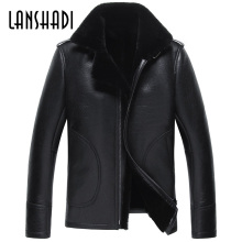 清仓原生态皮毛一体男真皮皮衣皮夹克短款修身欧美风空军皮草外套