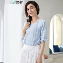 茵曼 2017夏装新款文艺范五分袖套头衬衣女衬衫上衣1872012119