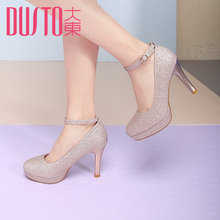 大东2017春季新款韩版防水台高跟鞋细跟女鞋圆头浅口一字扣单鞋