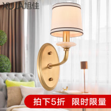 旭佳美式壁灯全铜卧室床头壁灯镜前灯简约客厅单头田园纯铜过道灯