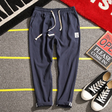 品购男装 港仔日系男亚麻九分裤休闲裤大码小脚哈伦裤男9分裤子潮