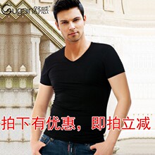 舒感正品26627新品男士短袖纯棉 夏季纯色弹力修身简约V领T恤