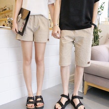 韩国夏季海边蜜月情侣装短裤沙滩裤棉麻裤大码男女热裤休闲五分裤