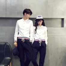 2017春装新款韩国红白蓝棉麻情侣装衬衫男女衬衫学生班服衬衣外套