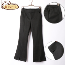 慕思雨女裤2017秋新款呢料微喇叭裤显瘦九分开叉阔腿裤16368休闲