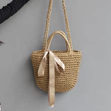 简约百搭编织包 手提单肩斜跨两用手工草编女包包 韩版休闲草编包