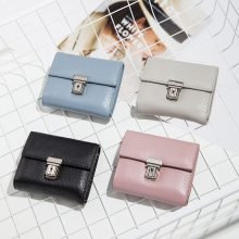 2017新款折叠钱包女短款三折韩版百搭小清新多功能简约小钱包牛皮