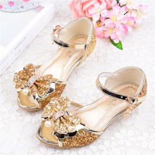 女童凉鞋蝴蝶结儿童高跟公主鞋2017夏季新款中大童亮片鱼嘴水晶鞋
