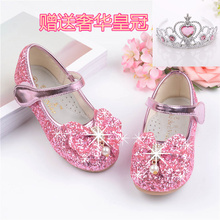 包邮冰雪奇缘艾莎女童凉鞋公主单鞋蓝色皮鞋春秋款儿童水晶高跟鞋