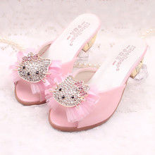 2017夏新款女童公主凉拖鞋 时尚水晶灰姑娘女孩高跟拖鞋儿童鞋