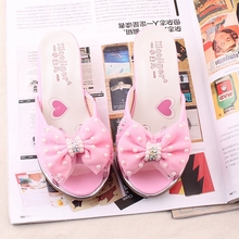 夏季新款女童公主时尚高跟拖鞋 2017儿童蝴蝶结防滑拖鞋凉鞋