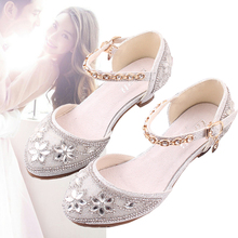 新款韩版女童鞋水晶公主高跟鞋儿童舞蹈学生演出鞋白色皮鞋正品