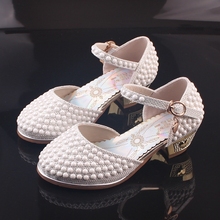 儿童高跟凉鞋 2017秋款女童公主包头凉鞋 珍珠皮鞋演出舞台高跟鞋