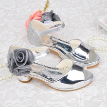 2017夏季凉鞋童4-10岁女童高跟鞋包头7小女孩水钻公主银色表演鞋