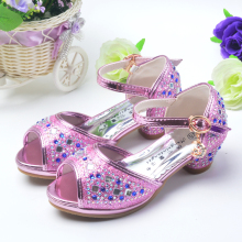 2017夏天新款女童高跟凉鞋冰雪奇缘蓝色公主水晶鞋女儿童粉色凉鞋