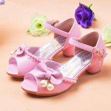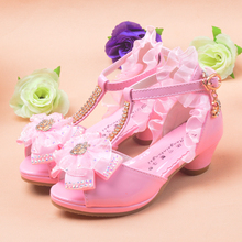 儿童高跟鞋子女童凉鞋2017夏季新款粉色公主凉鞋女孩子蝴蝶结凉鞋