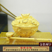 绒沙金碗乔迁新居小孩满月生日结婚礼物工艺品开业摆件 富贵金碗