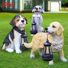 户外太阳能灯仿真动物小狼狗摆件庭院别墅花园创意玻璃钢雕塑装饰