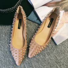 2016春秋季欧美风平底铆钉单鞋女朋克风大牌女鞋浅口尖头软底船鞋