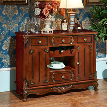 餐边柜 欧式实木餐边柜 茶水柜酒柜餐厅客厅储物收纳 雕花带门1.2