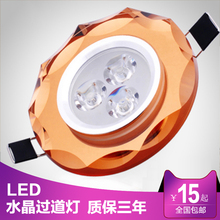 皇利莱LED水晶射灯 3W水晶天花灯牛眼筒灯客厅走廊过道电视墙孔灯