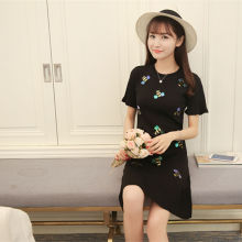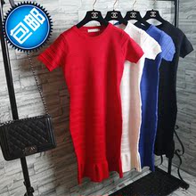 2017春季新款韩版显瘦修身短袖针织连衣裙小香风中长款裙子女百搭