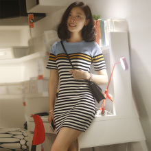 2017春款装新款 百搭条纹修身针织衫 撞色显瘦连衣裙