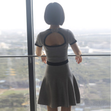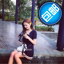 凶猛熊猫2016欧美春新款纯色轮廓收腰性感圆领短袖针织连衣裙B24