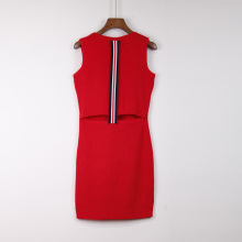春夏季女装高腰a字短裙格子针织套装裙两件套韩版修身显瘦连衣裙