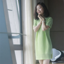 宽松直筒度假薄荷绿冰丝针织连衣裙镂空中长款2017新款裙子夏女