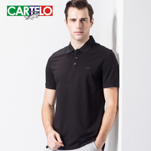 卡帝乐鳄鱼桑蚕丝T恤 男士纯色翻领青年体恤衫 宽松大码衣服新品